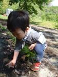道に落ちている実や葉っぱが気になったり、こどもたちは