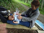 キラキラ川が流れる様子をじっと見つめたり、石を手にとってみたり、ぱちゃぱちゃ川面をたたいてみたり。