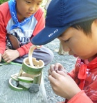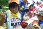 2012年8月21日プログラム報告里山de遊び隊, エコエデュエコエデュ 8月12日 天気予報は雨でしたが、カンカン照りのいいお天気。 はじめに、子どもたちはのこぎりの使い方を学び竹の輪切りに挑戦です! 「出来るだけ細く」を目標にだんだんと上手になってきましたよ。 お昼ご飯は竹で作った樋で「流しそうめん」です。 子どもたちは楽しみながらおなかいっぱい食べました。 午後、今度は自分だけの水鉄砲づくりに挑戦。 自分で作った自慢の水鉄砲での飛ばしゲームは盛り上がりました。 Post navigation ← 【8/26里山いっぽ】説明会を行います 【報告】8/12わんぱく里山「願いを込めてカカシを立てよう!」 →