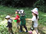 竹のといをお友達と運ぶところからお散歩が始まりました。