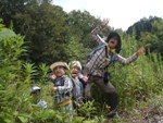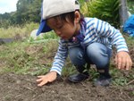 畑に到着して、ダイコンとカブの種を蒔きました。