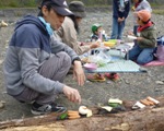 また、焼き石マジックでは、十分に加熱した石で、各家族が持参した食材を焼いて、