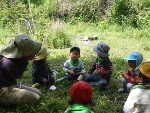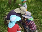 参加回数が少ないので、まだ場所に慣れていないのかなーと思いつつ、さとちゃんがきっかけづくりにヘビイチゴを集めてジャム作りをしようと誘ってみました。