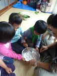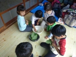 外遊びのあとは、30分ほど室内で柏餅作り。