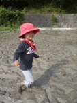 泥の中にいる子で、「ようい どん」でかけっこしてみました。
