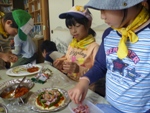 お昼ごはんは、オリジナルピザ。子ども達は2人1組で、