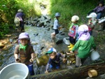 綺麗な川での遊びは、冷たくひんやりしていて、今日の活動にはぴったりです。