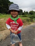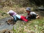 Hちゃんが、色水遊びがしたくなって、田んぼの脇の水路にいきました。