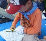 ぼったい、タモなどを使っていきものをつかまえる。