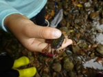 石の裏や比較的水流の弱い川端を探すと、綺麗な川にしか住まないサワガニが現れます。
