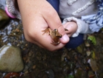 見ると、手のなかには小さなアカガエルが一匹、ひょっこり隙間から顔を出していました。