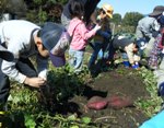 アースオーブン(薪で調理するオーブン)や焚き火で収穫したものを料理。