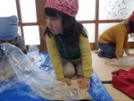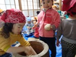 次に先ほどの こうじと塩を混ぜたものと、つぶした大豆を混ぜておだんごにします。