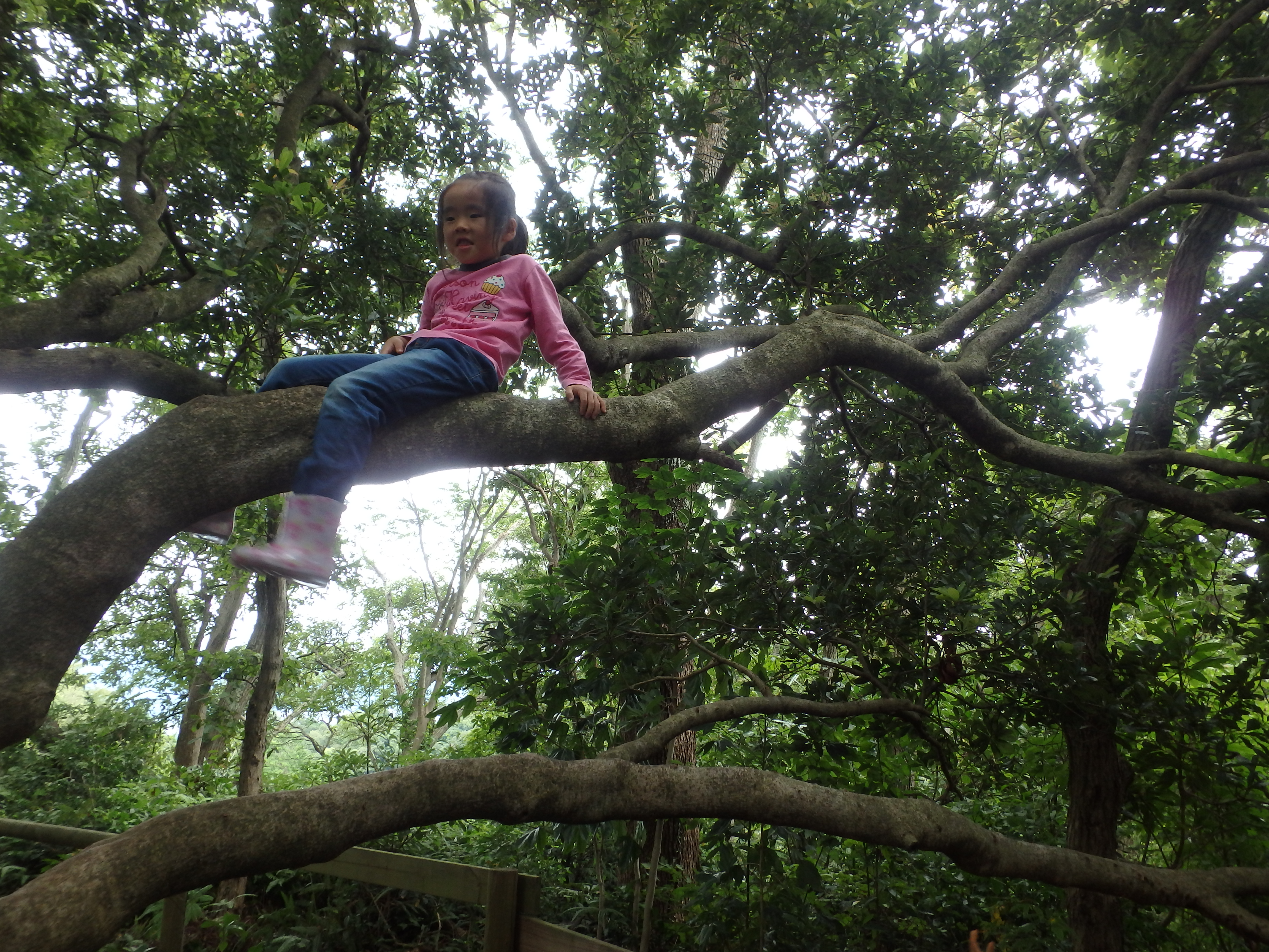 お楽しみの木登りに