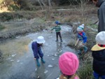 最後は氷遊び。氷のはった池は子どもたちが乗っても割れませんでした。