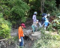 普段やりきれない側溝のゴミや枝をとりのぞいたり、