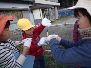 初めは手で測っていた子どもたち。