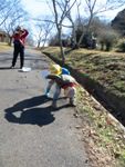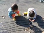 落ち葉で遊んでいました。
