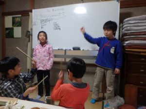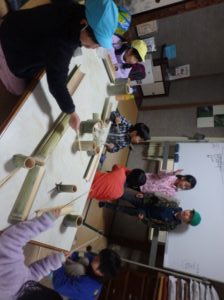 みんなも竹の楽器(食器から大変身)でリズムを刻みます♪