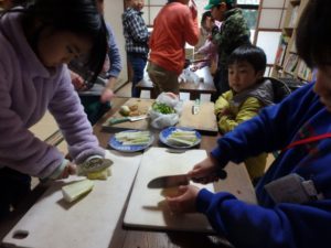 元気にカラオケが終わると、さあ、最後の畑の野菜でお料理です。