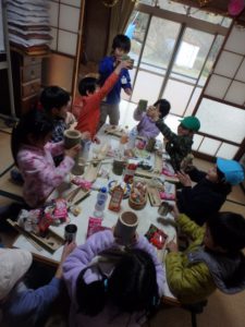 みんなそれぞれ「バレンタインデーのお返し」やジュースを持って集まってきました。