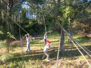 なが~い竹を組み合わせて、