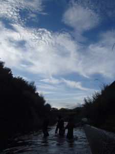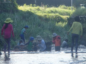 川遊びが楽しくって、体が震えても川から上がりたくない面々。