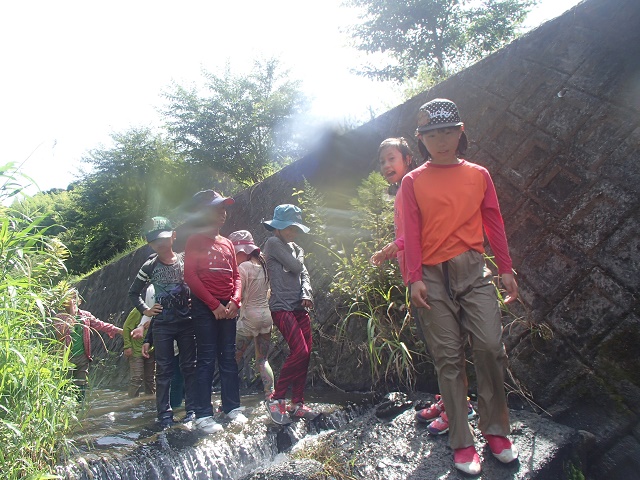 川に入れない子も、土手の上から道案内の呼びかけをして、みんなの安全を守ります。