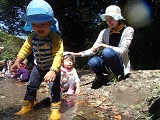 まだ歩けない赤ちゃん達も、川の中をハイハイしたり、