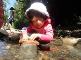 川の中でおままごとを始めたSちゃん。