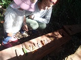 川遊びだけじゃなく、落ち始めた木の葉を並べて遊んでいました。