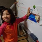 描き終えたらみんなで発表!飛び込む前と飛び込んだ後を仕掛けを作って上手に表現したね!