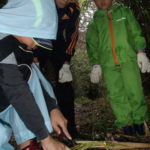 低学年が「この竹切りたい。」の声に高学年答えます。