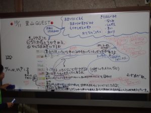 『里山にはいろんな木の実やきれいな葉っぱやおもしろい形の葉っぱ、食べ物とかがいっぱいあって、生き物の宝庫だよ』っていうこと!