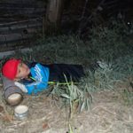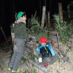 洞穴の近くにベッドをつくり始めた子どもたち。