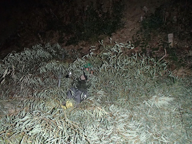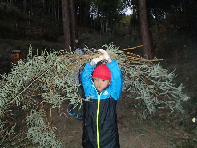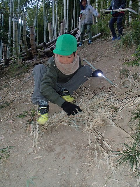 集めているのは竹の枝。