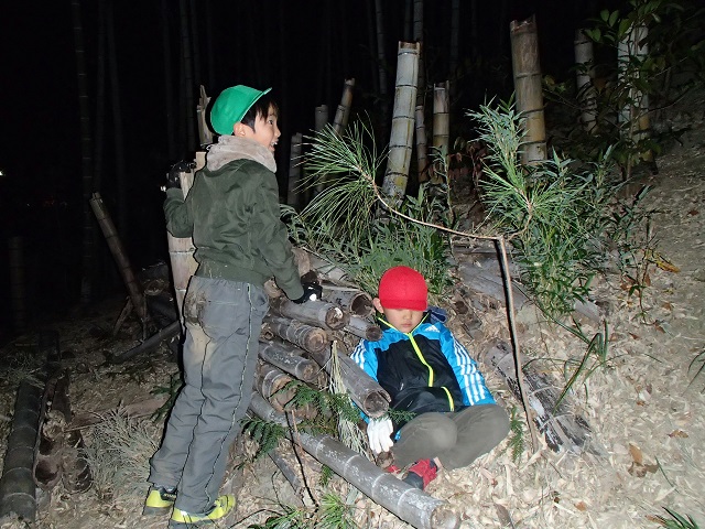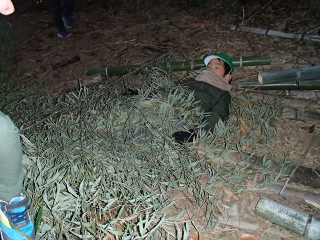 全員が寝られるように、せっせと竹を運ぶ子どもたち。