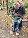 グリーンクラブにつくと、竹ぽっくりに挑戦!