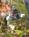 小さな指で、小さな冬イチゴを上手に摘まんで
