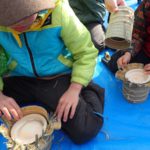 午後は門松つくりの続きで土台のコモまきをしました。紐しばりが大変だったようで、スタッフや保護者に手伝ってもらってなんとか出来るようになりました。