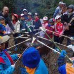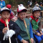 男性の保護者には竹パン用の竹の棒作りをしてもらい、いよいよラストの巻き巻きパン焼き!
