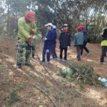 午前中セレモニーの後、全員で門松用の素材集めをするため、山に入ります。