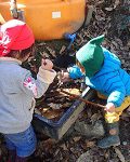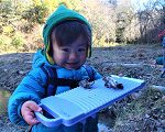 チョコレートのような霜柱でおままごと。