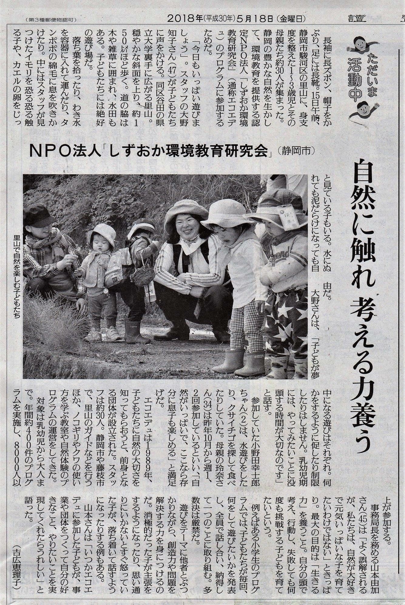 2018年5月18日運営からのお知らせ里山のかやねずみエコエデュ 本日(5月18日)の読売新聞に エコエデュの記事が掲載されました。 1日かけてじっくり取材をしてくださり、 「里山のかやねずみ」の活動や目的、 それにエコエデュが社会の中で目指しているところまで、 丁寧に書いてくださっています。 Post navigation ← 【報告】12/2運営中間報告会 【里山のかやねずみ】5/22 →