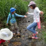 始まる前に、アカハライモリを捕まえるのがルーティーンも男の子。