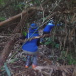 木登り得意男子が、するすると木に登り枝を垂らします。枝は細いのにお猿さんのような身のこなし!