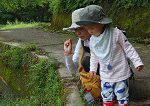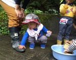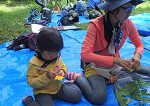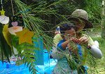 Uちゃんは、摘んだ葉っぱを細かくちぎって