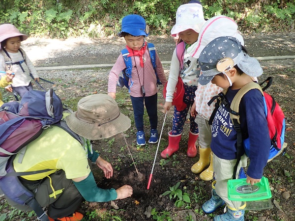 ここの土は固いかな柔らかいかな?