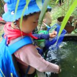 水がめではモリアオガエルの卵からかえったオタマジャクシをたくさん発見!