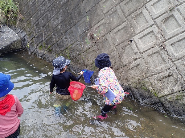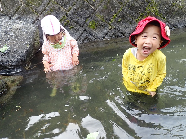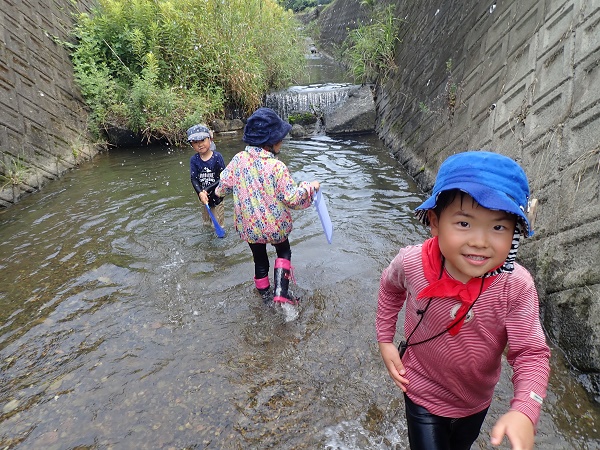 川に到着してからは、暑くなってきているだけに子どもたちはおおはしゃぎ。